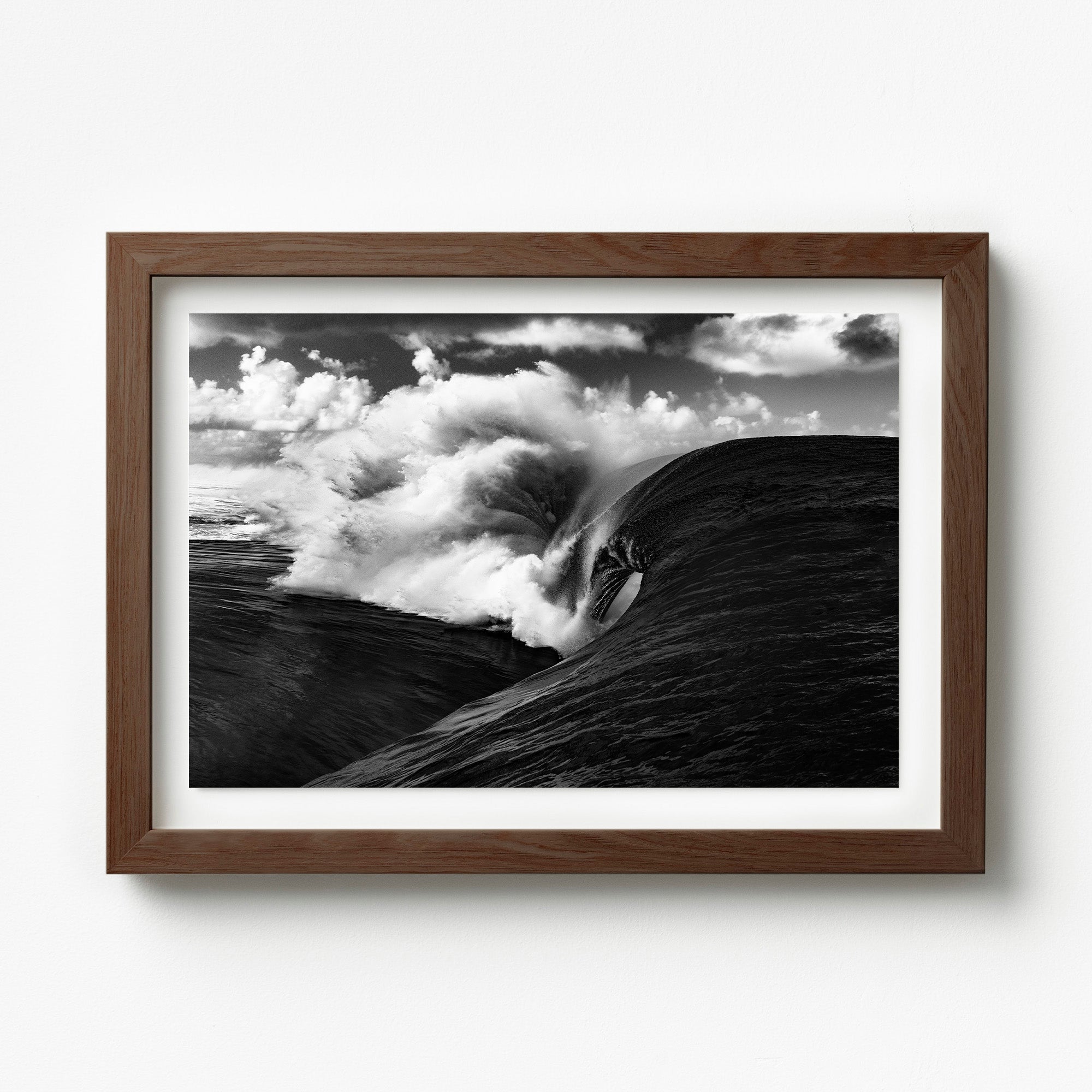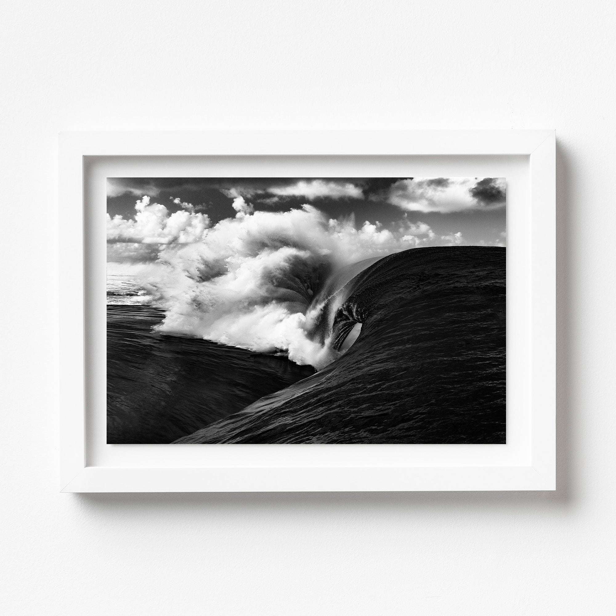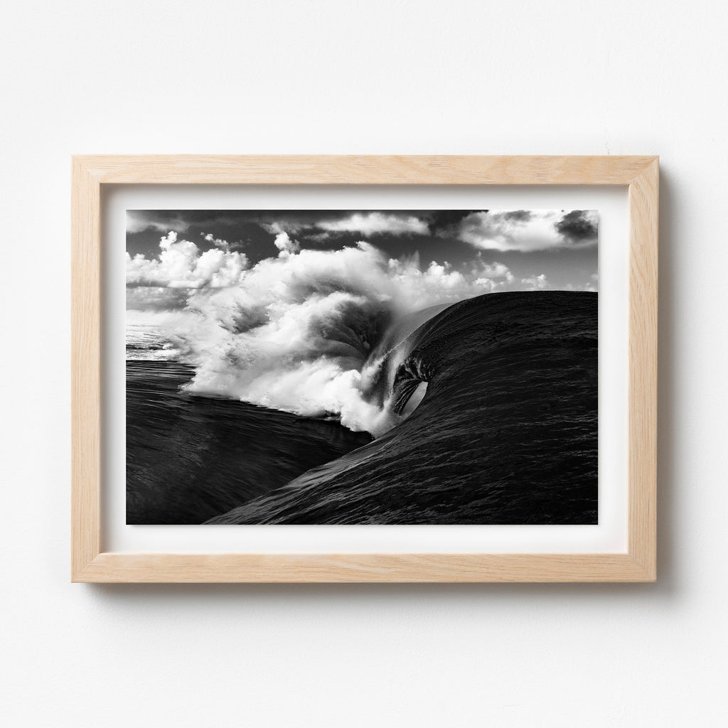 Surge – Heavy Wave Breaking at Teahupo’o, Tahiti. Witnessing Teahupo'o at its most menacing—a mountain of water warping over that infamous reef in a way that defies physics. After years of shooting waves, this is still the kind of moment that makes your heart stop. Mother Nature showing us what real power looks like. Teahupo’o is one of the most feared waves in the world, breaking over a razor-sharp reef just feet below the surface. It’s where surfers go to test their limits, and where photographers capture the ocean at its rawest and most unforgiving. Best displayed in bold, modern interiors or ocean-focused spaces.