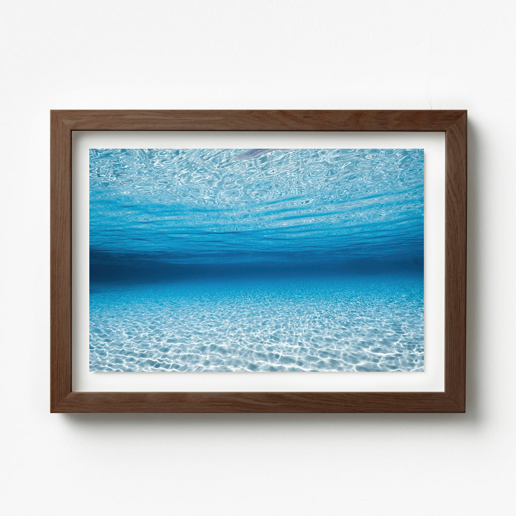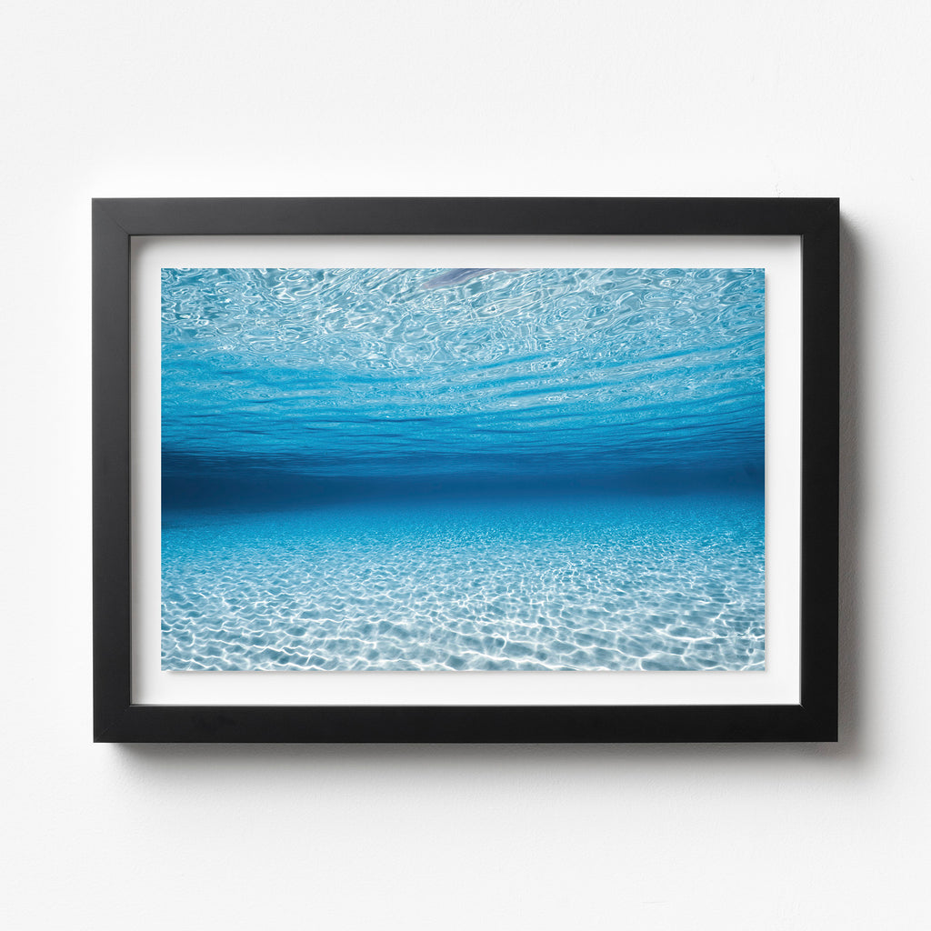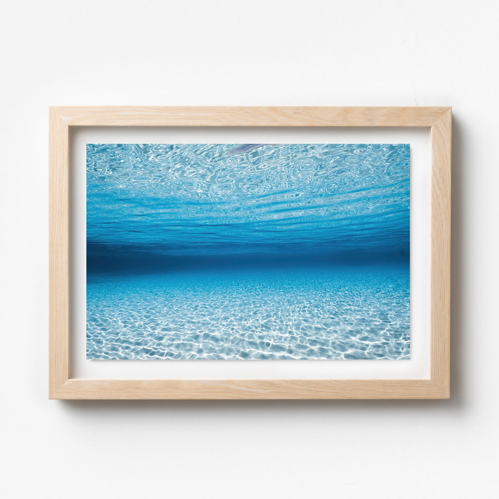 Below the surface, everything slows. The water becomes still and weightless, the sand glowing as light refracts and moves across it. Minimal and immersive, Bahama Blue captures the feeling of floating — quiet, unhurried, suspended in pure color and motion.