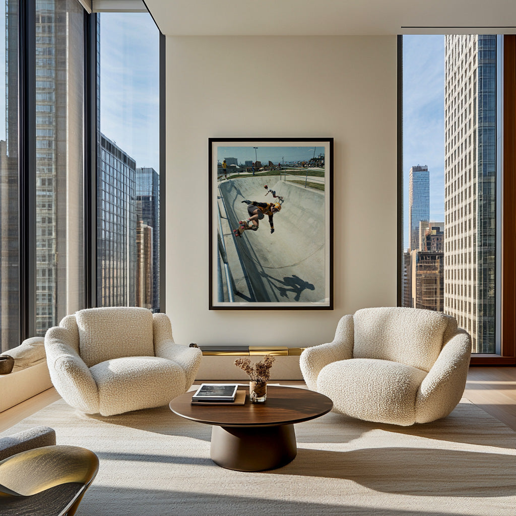 1977 Skate Park – Archival Photography Print, California 1977. Skateboarders at a skate park on July 1, 1977 in Los Angeles, California. A snapshot of California’s skate culture in its formative years — full of energy, youth, and freedom. The raw motion, sunlit concrete, and vintage gear immortalize the golden era of 1970s skateboarding. A nostalgic piece that fits seamlessly into creative studios, lounges, or entertainment spaces with a taste for retro Americana and subcultural history.