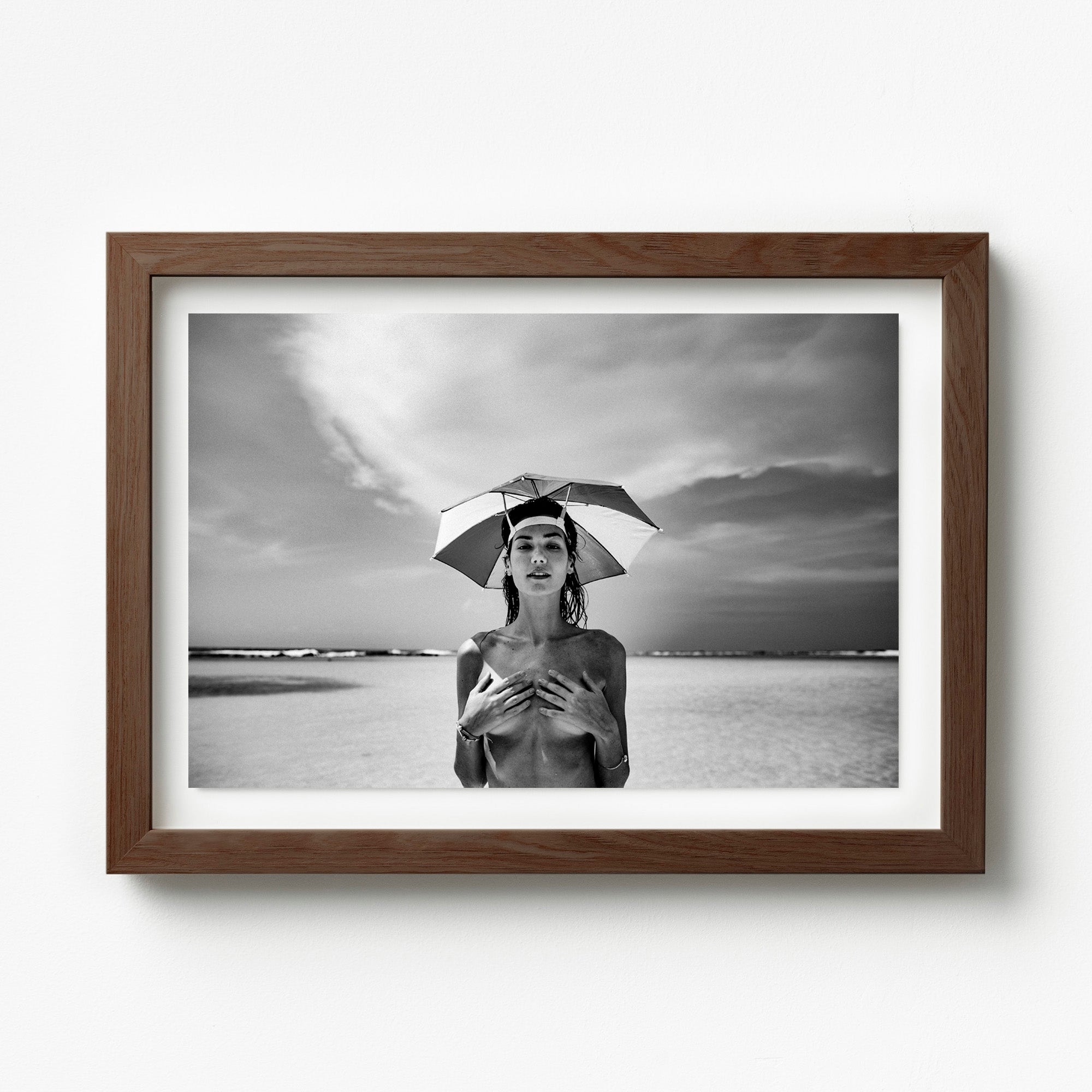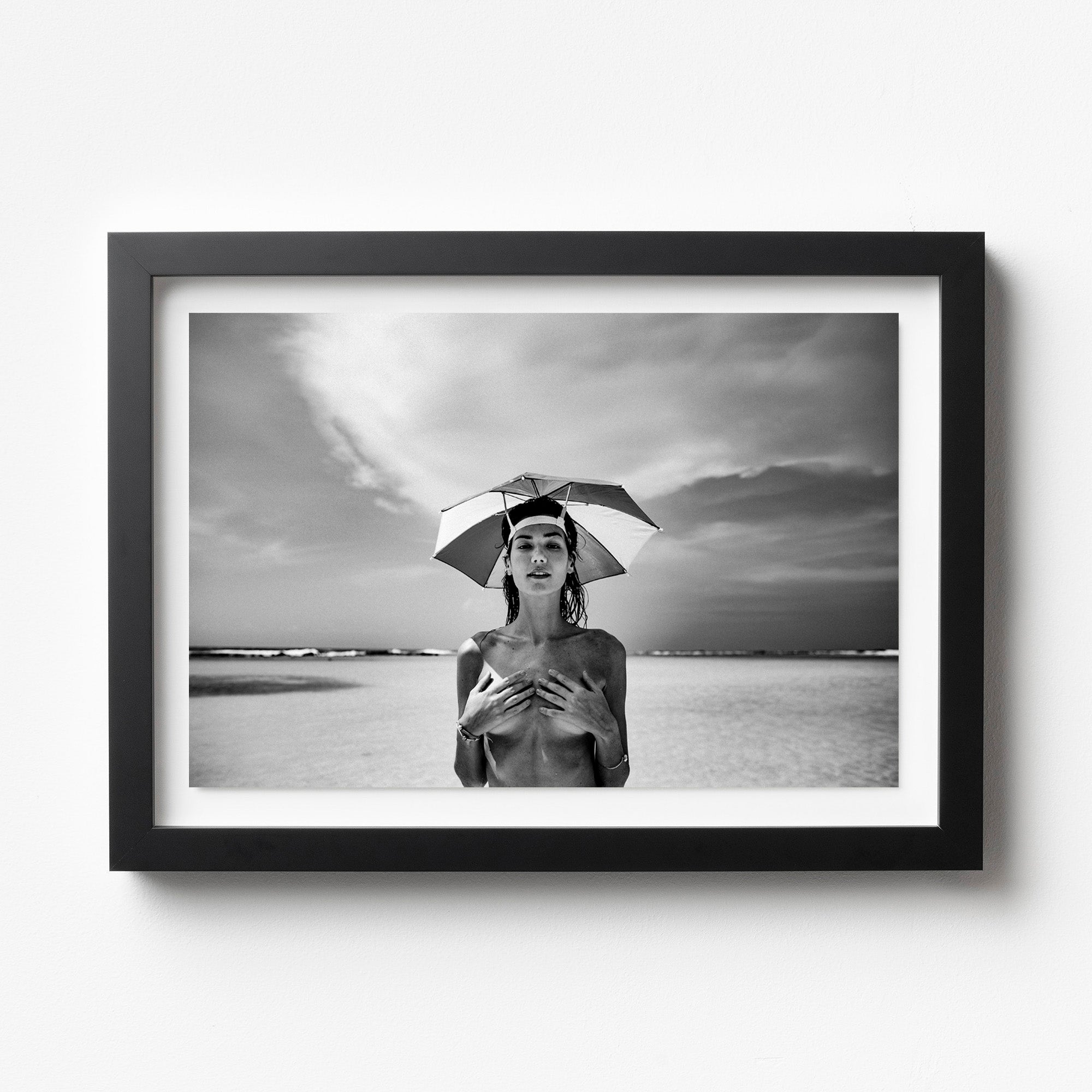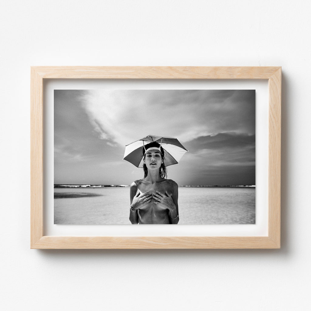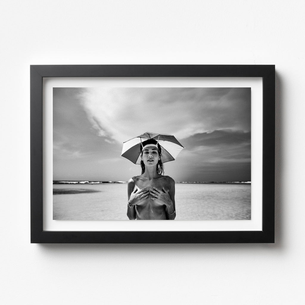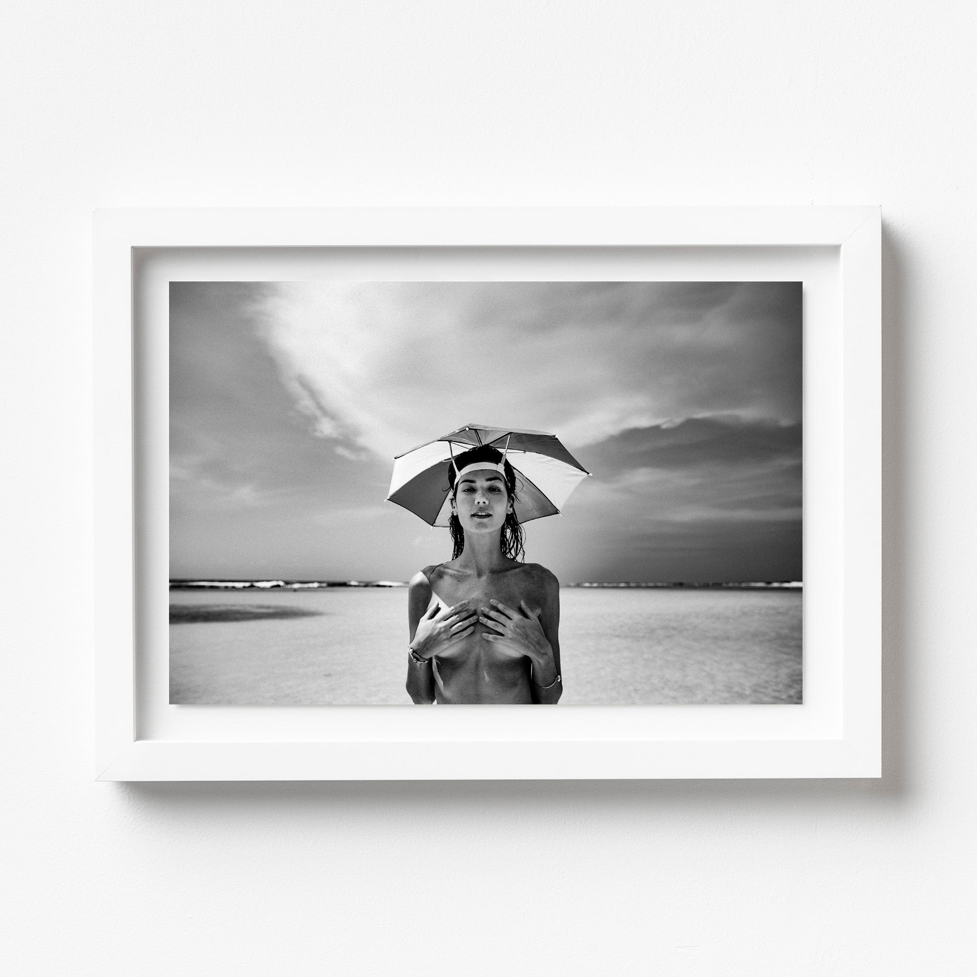Shade – Black and White Lifestyle Photography Print, Aruba. A moment of pure Caribbean elegance – her oversized sun hat creating the perfect frame against Aruba’s shimmering waters. Aruba is known for its steady trade winds, lively beaches, and rich culture — making playful sun gear a necessity and a statement. The photo captures the island’s effortless blend of fun and beauty, where open skies and rolling waters create the ultimate backdrop. Perfect for bold interiors, tropical-inspired spaces, or collectors of Caribbean beach photography, fashion-forward portraiture, or striking monochrome compositions.